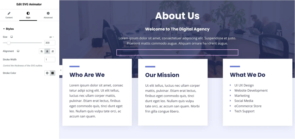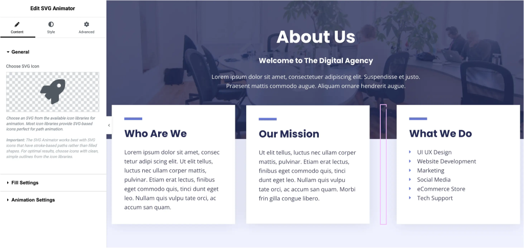 Bring your SVG icons and illustrations to life with the SVG Animator widget, included in Ultimate Addons for Elementor. Whether you’re aiming to animate a logo, add a dynamic icon, or create a scrolling visual, this widget gives you control without writing code.