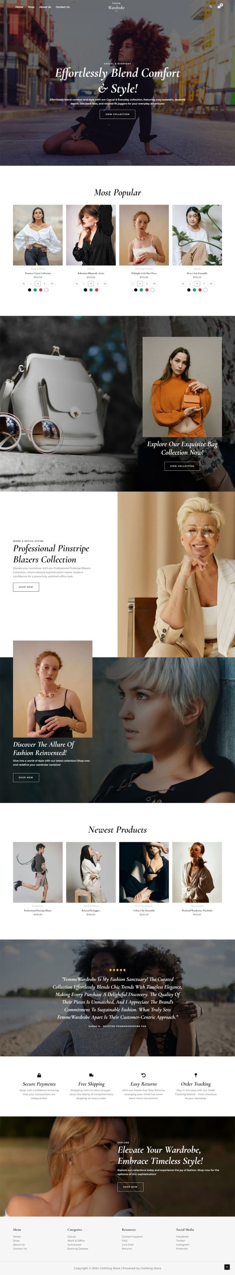 The Clothing Store template is designed to get visitors in the buying mood and make it easy to convert. Everything an online store needs to succeed!