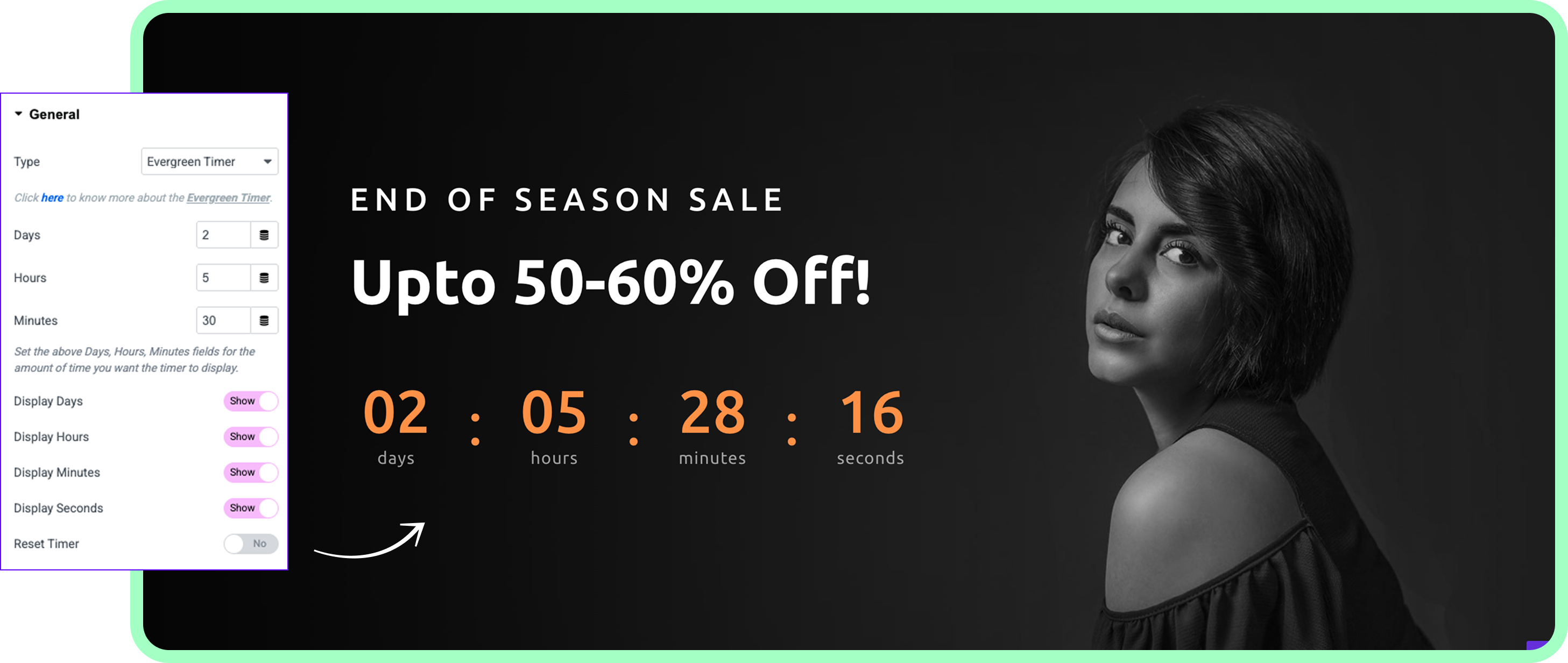 - Highlight deadlines with fixed-date or evergreen countdowns.