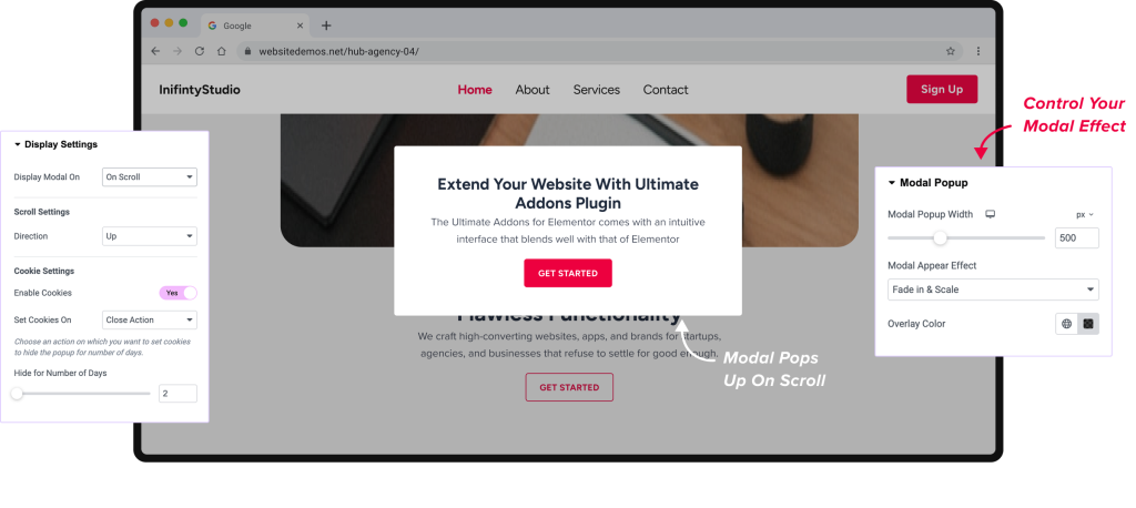 Keep your visitors engaged by automatically displaying a modal popup when they scroll through your content. Perfect for highlighting promotions or sharing important updates without disrupting the browsing experience.