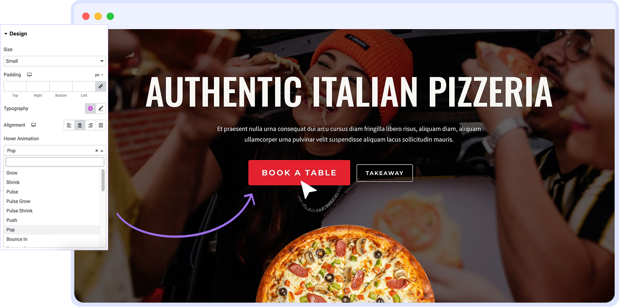 - Set buttons to open links in a new tab, scroll to sections, or trigger popups