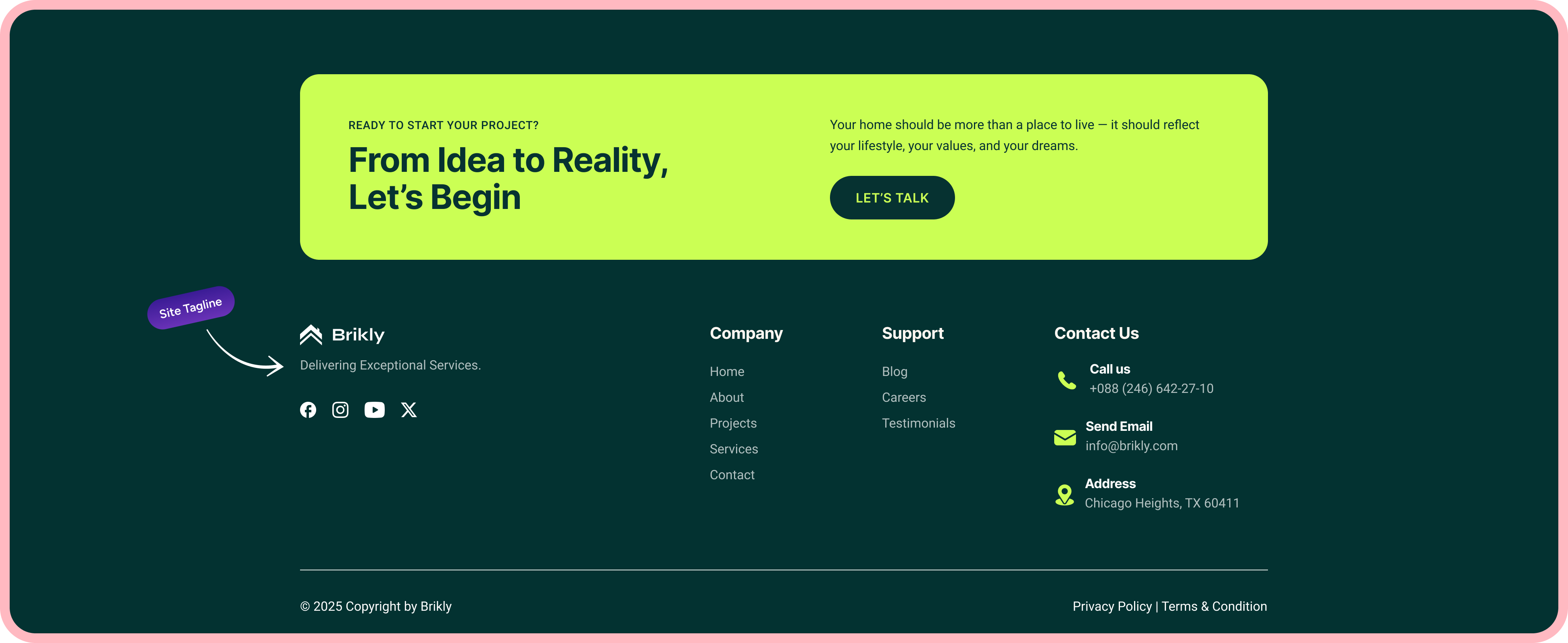 Display your tagline alongside your logo, in navigation bars, or below hero headlines to reinforce brand identity at every touchpoint.