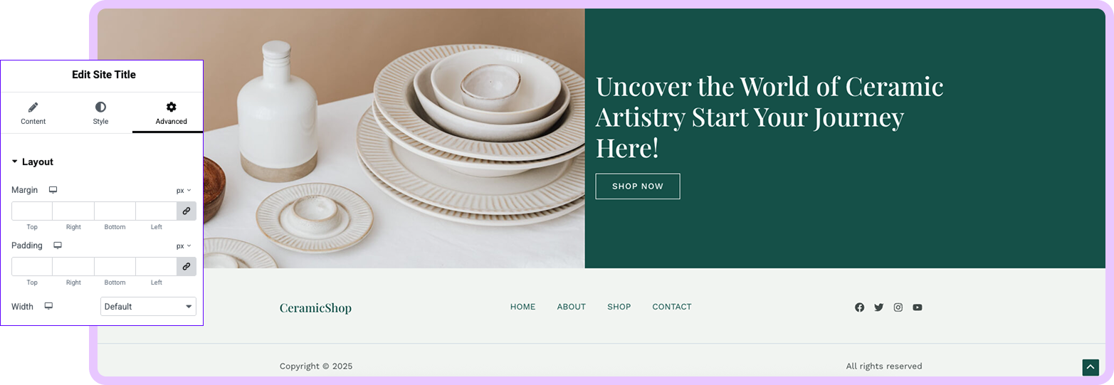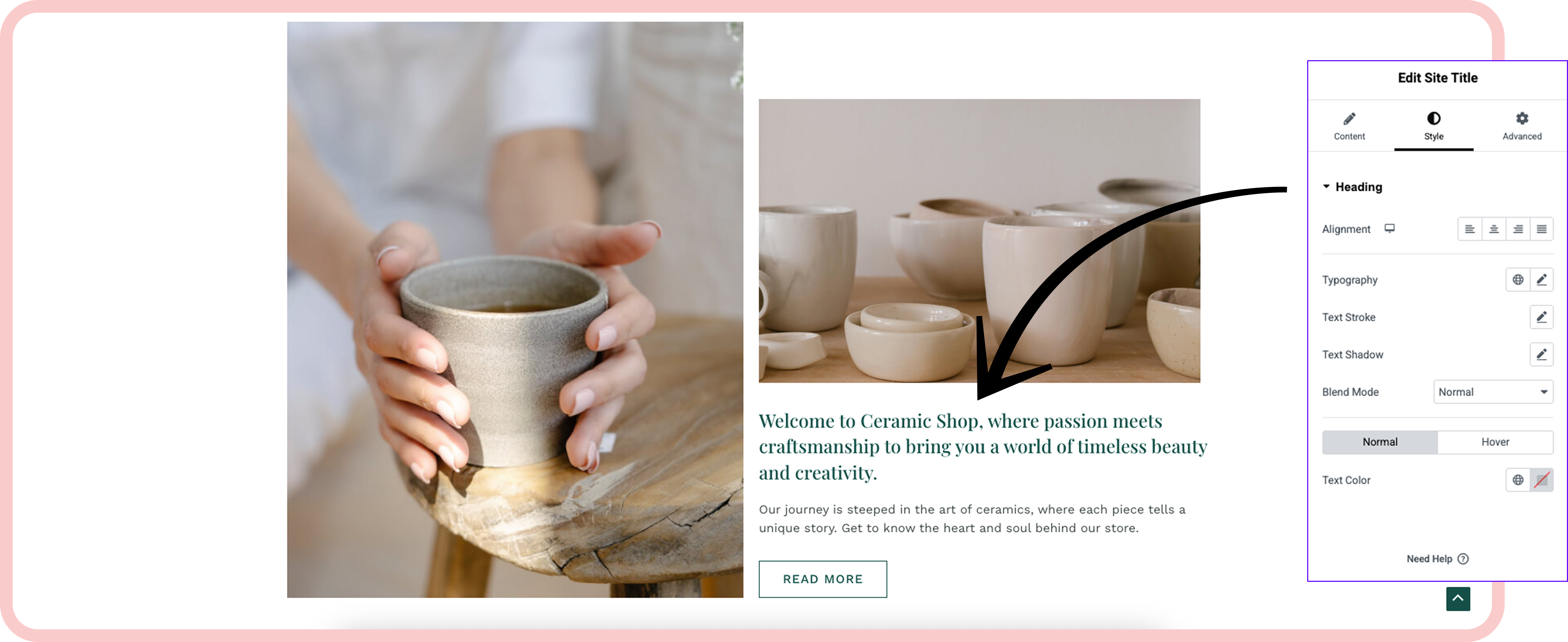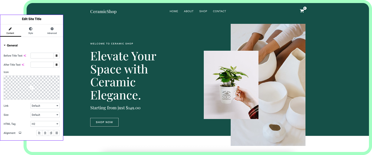 Display your website’s title dynamically, always syncing with WordPress settings, and style it effortlessly using typography, colors, spacing, and more.
